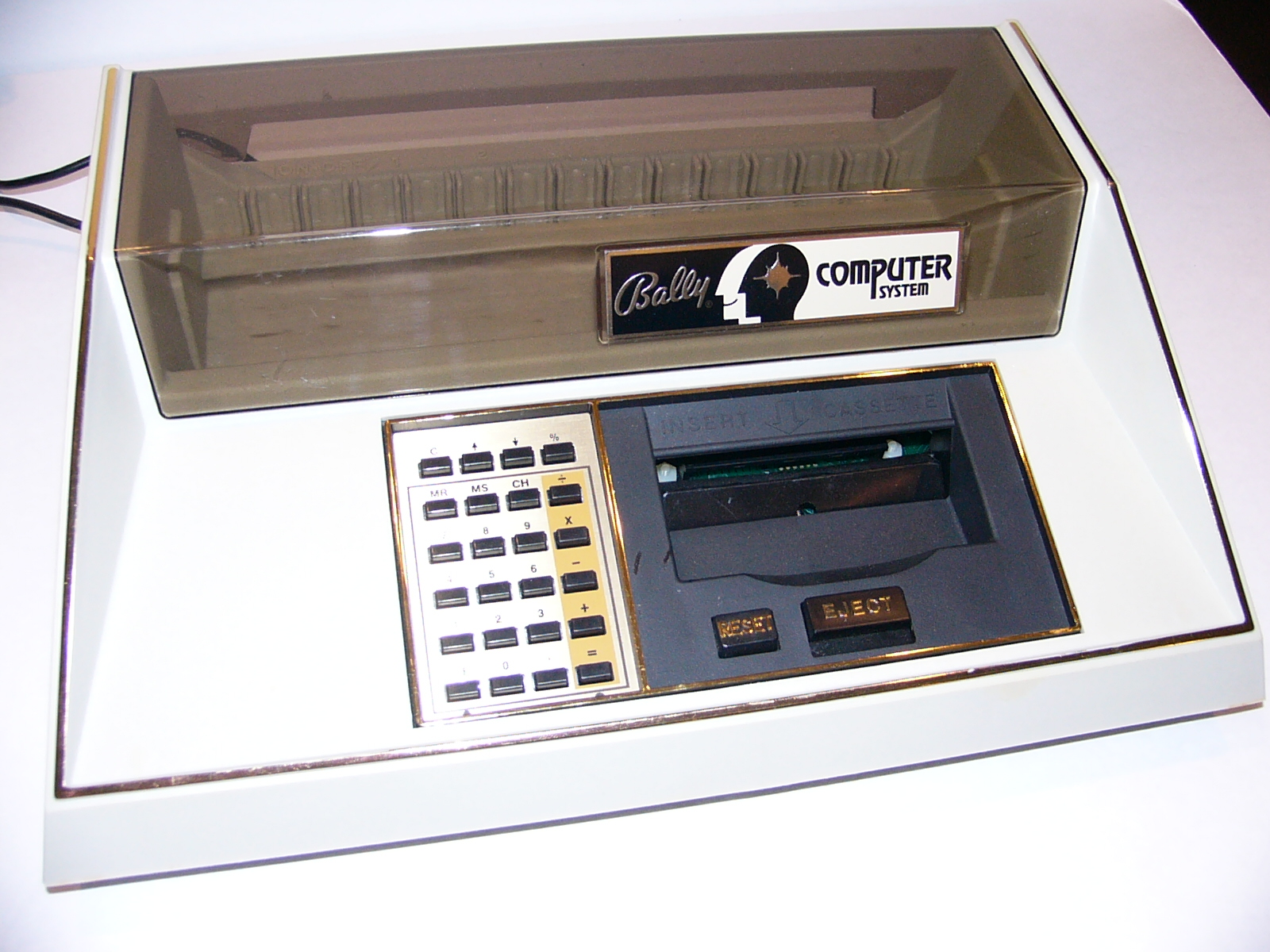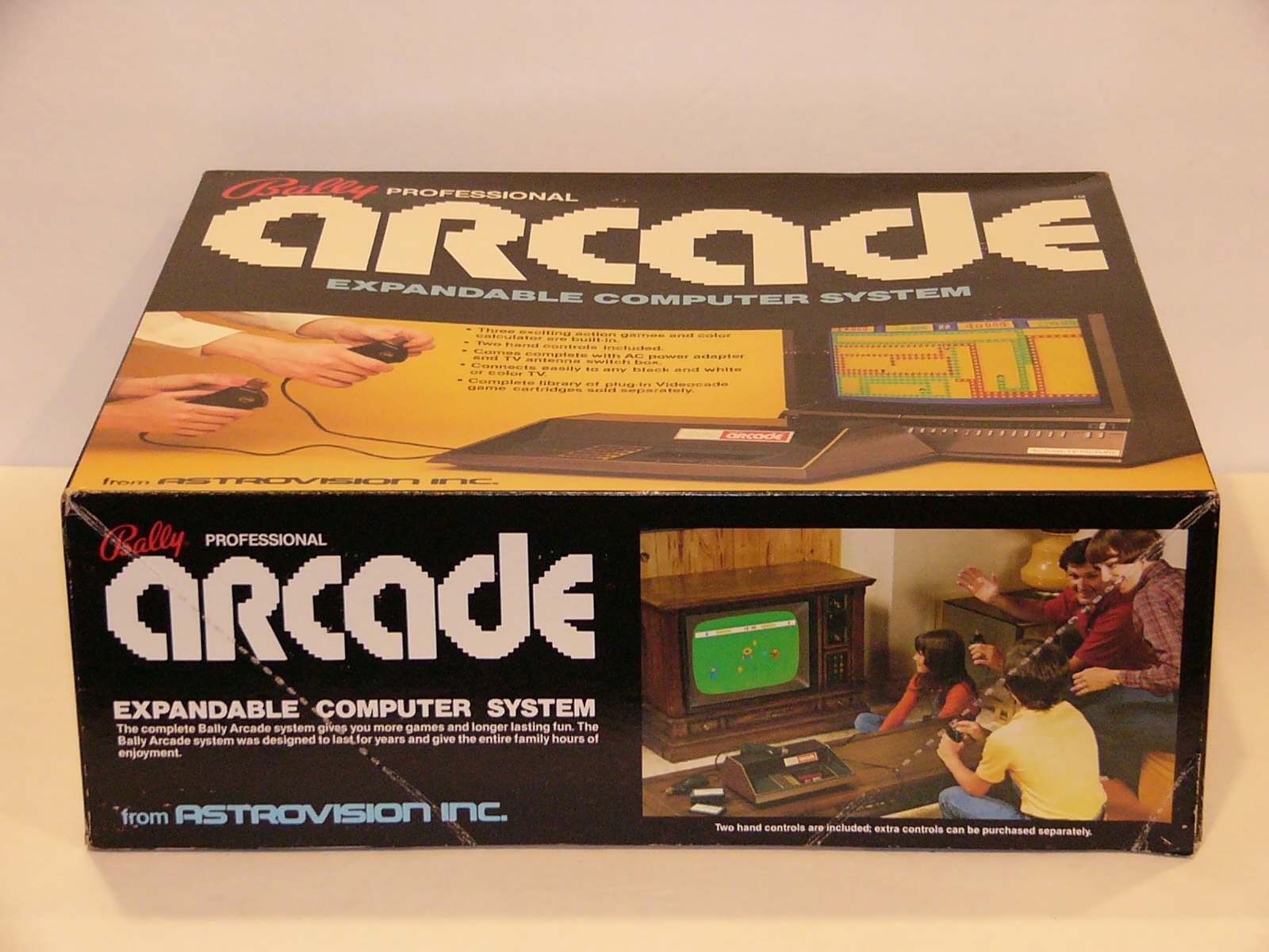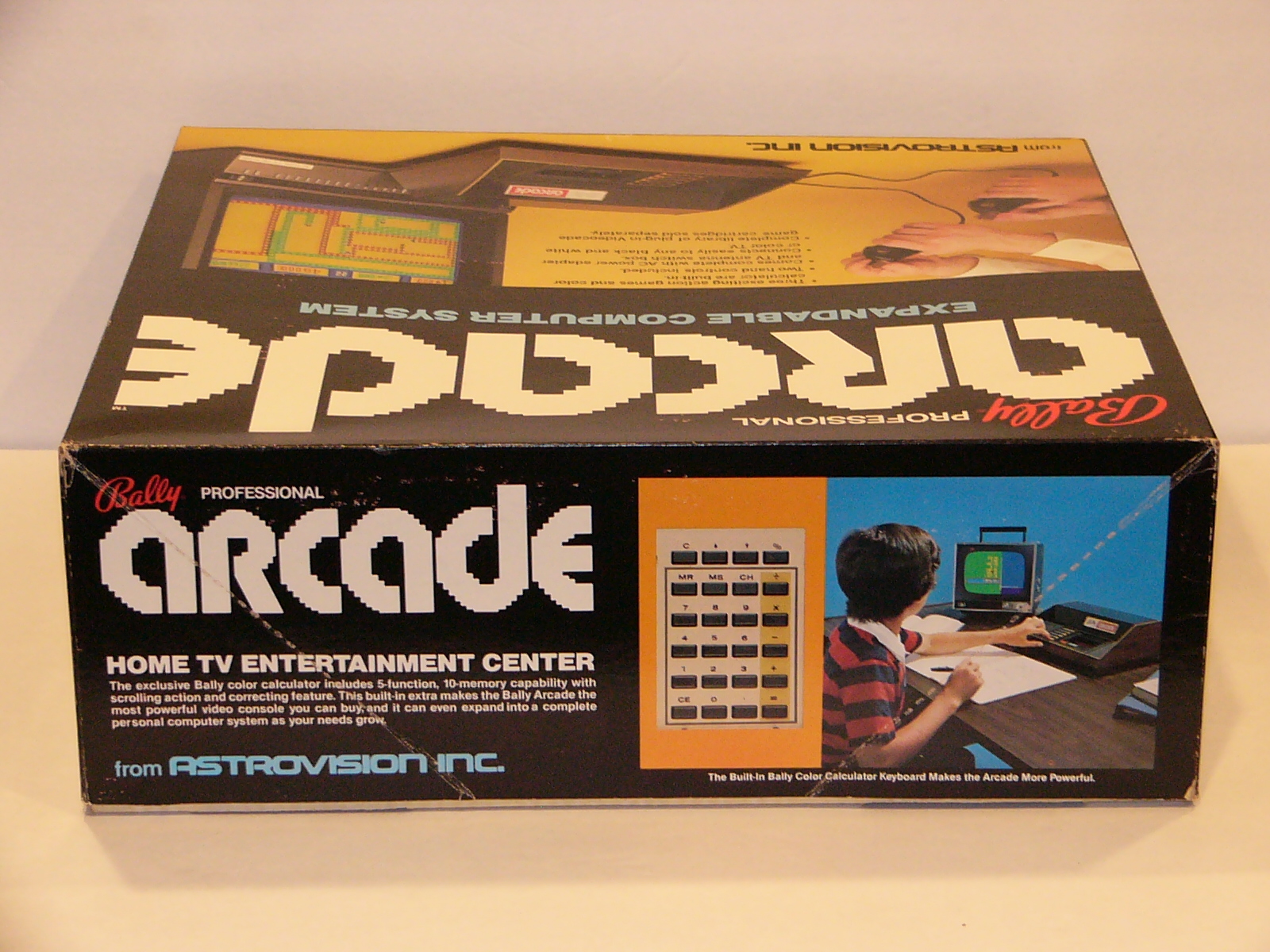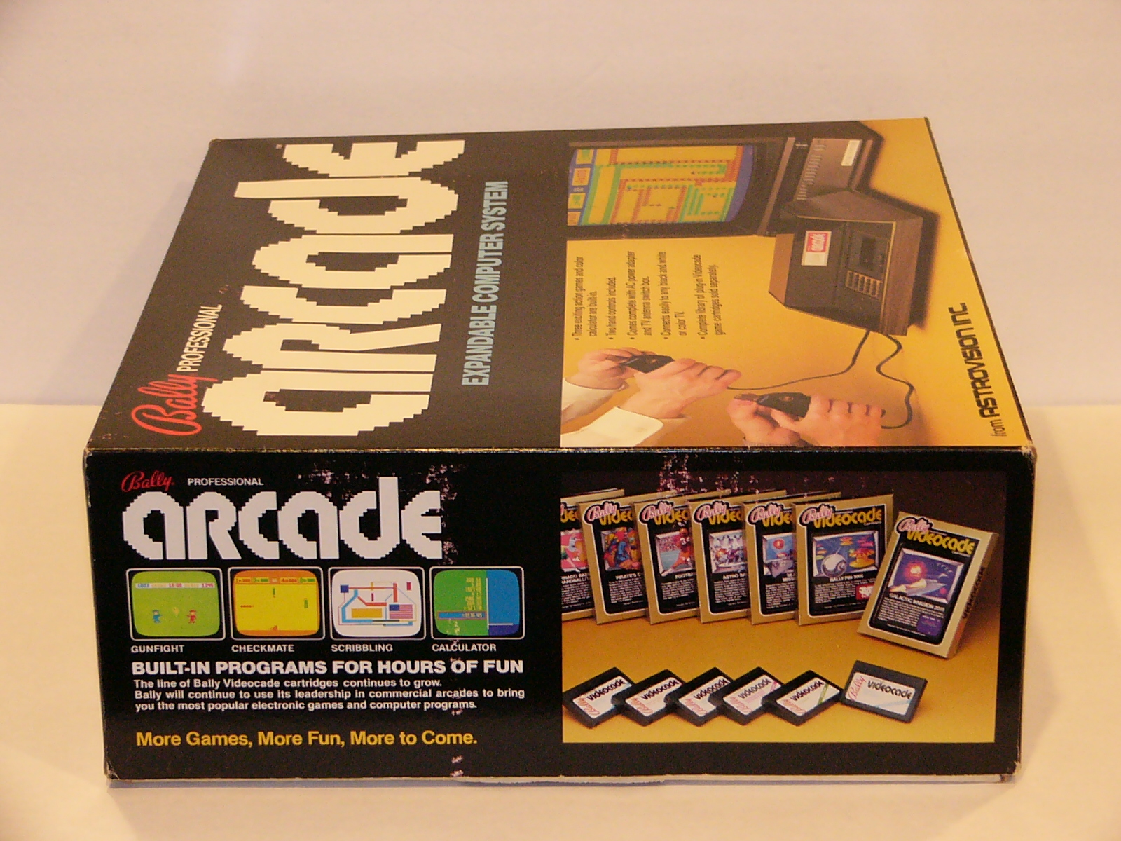 One of the most collectible models of the Astrocade is the white Astrocade. The top of the console case is a distinctive off-white color instead of faux woodgrain. This model came with covers featuring the red Bally Professional Arcade badge and the white Bally Computer System badge.